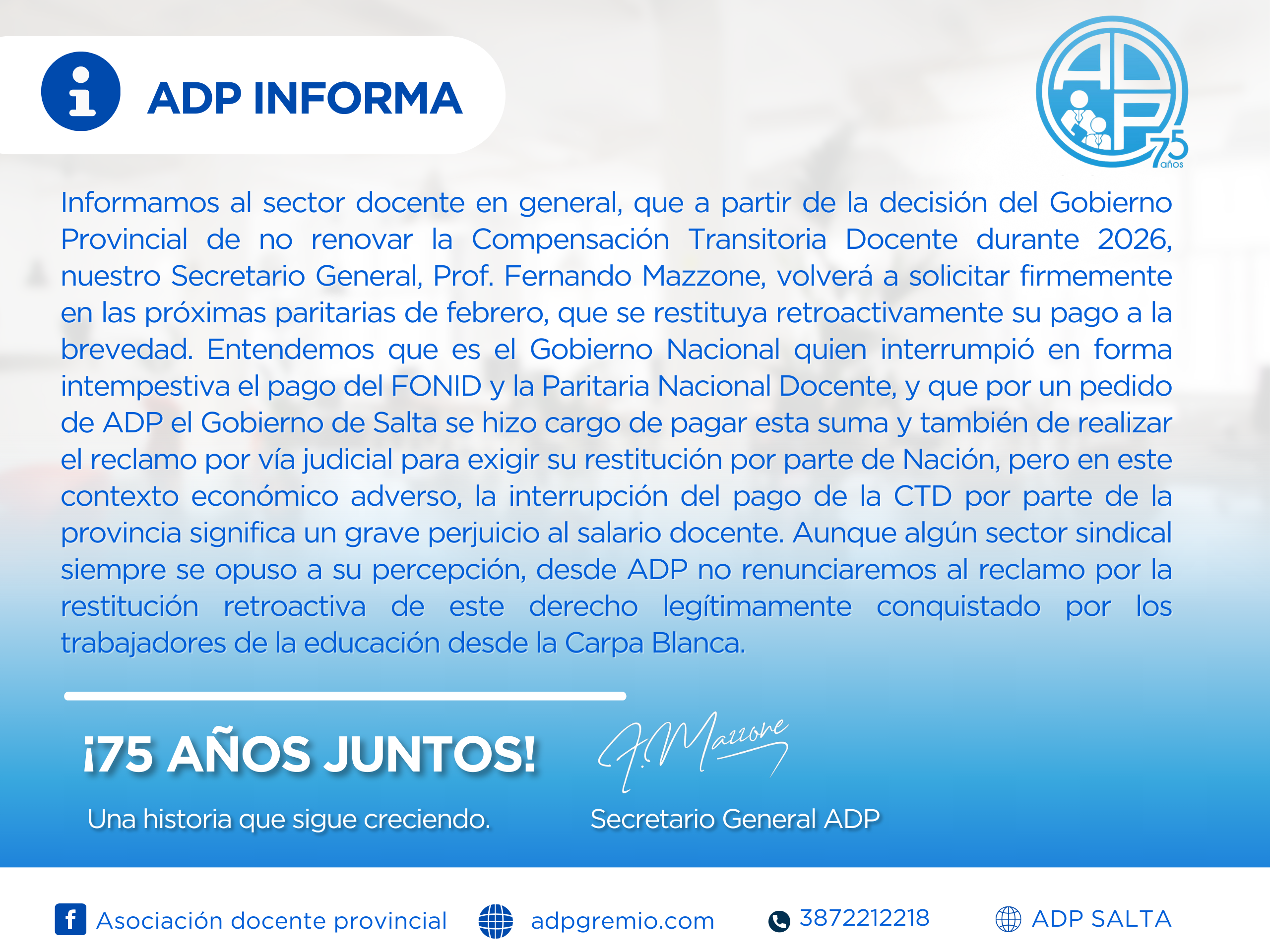 75 años de la Asociación Docente Provincial (1950- 2025)