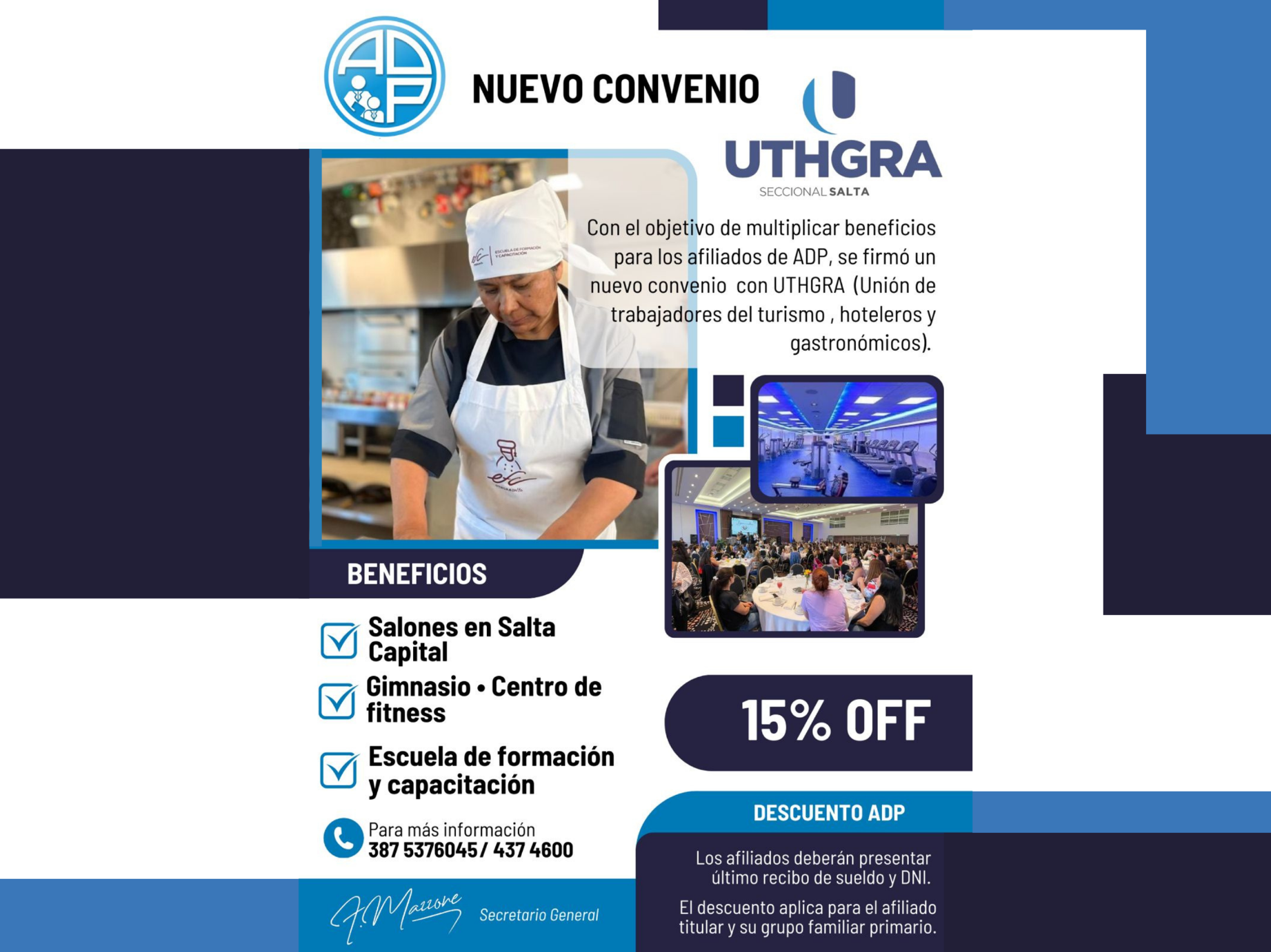 Con el objetivo de multiplicar beneficios para los afiliados de ADP, se firmó un nuevo convenio con UTHGRA (Unión de trabajadores del turismo, hoteleros y gastronómicos).