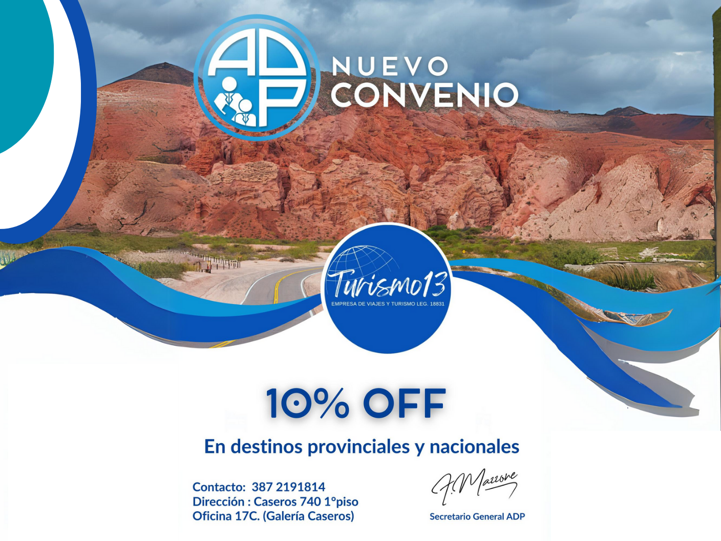 NUEVO CONVENIO CON 'TURISMO 13' PARA NUESTROS AFILIADOS