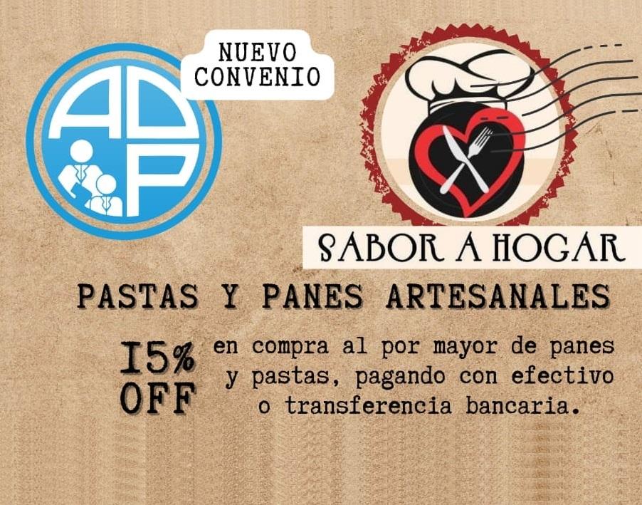 Nuevo Convenio para nuestros afiliados. SABOR A HOGAR (Joaquín V. González). A partir de hoy los afiliados podrán acceder a un 15 % de descuento en compra al por mayor de panes y pastas, abonando en efectivo o transferencia bancaria. Deben presentar documento y último recibo de sueldo.